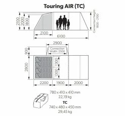 The Kampa Touring AIR is the easy way to make your campervan family friendly. This large touring awning fits snugly alongside your campervan, motorhome, MPV or small van. This tunnel awning uses inflatable air technology, making it quick and easy to pitch despite its larger size. The awning uses four inflation points, making any air leaks easy to isolate and repair. There is also a cable entry point, and fittings for Kampa SabreLink lighting systems.
