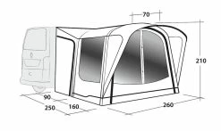 Outwell Newburg 160 Air drive away awning is an inflatable awning designed for VW, Ford Transit and similar sized campervans. This quick pitch drive away awning features a spacious living area ideal for additional living space or storage during camping trips. The Outwell Newburg 160 Air drive-away awning is a tunnel tent awning with side access via doors at the front and back of your campervan and has a height range of 175cm-200cm via beading options (5mm and 7mm).